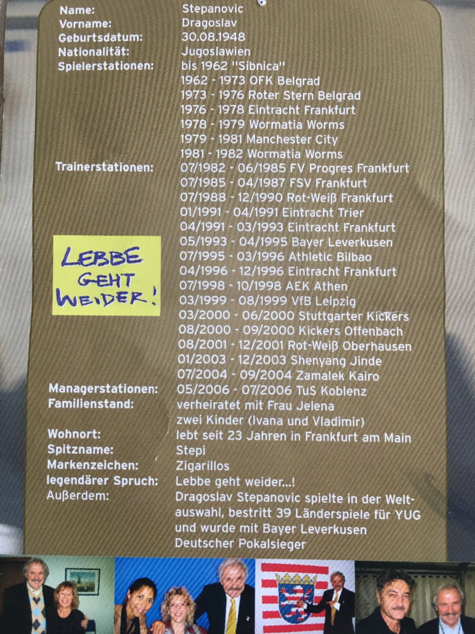 Trenerska karijera: Progres Frankfurt, FSV Frankfurt, Rot Vajs, Ajntraht Trir, Ajntraht Frankfurt, Bajer Leverkuzen, Atletik Bilbao, AEK Atina, Lajpcig, Štutgart Kikers, Ofenbah, Rot Vajs Oberhauzen, Šenjang, Zamalek Kairo
