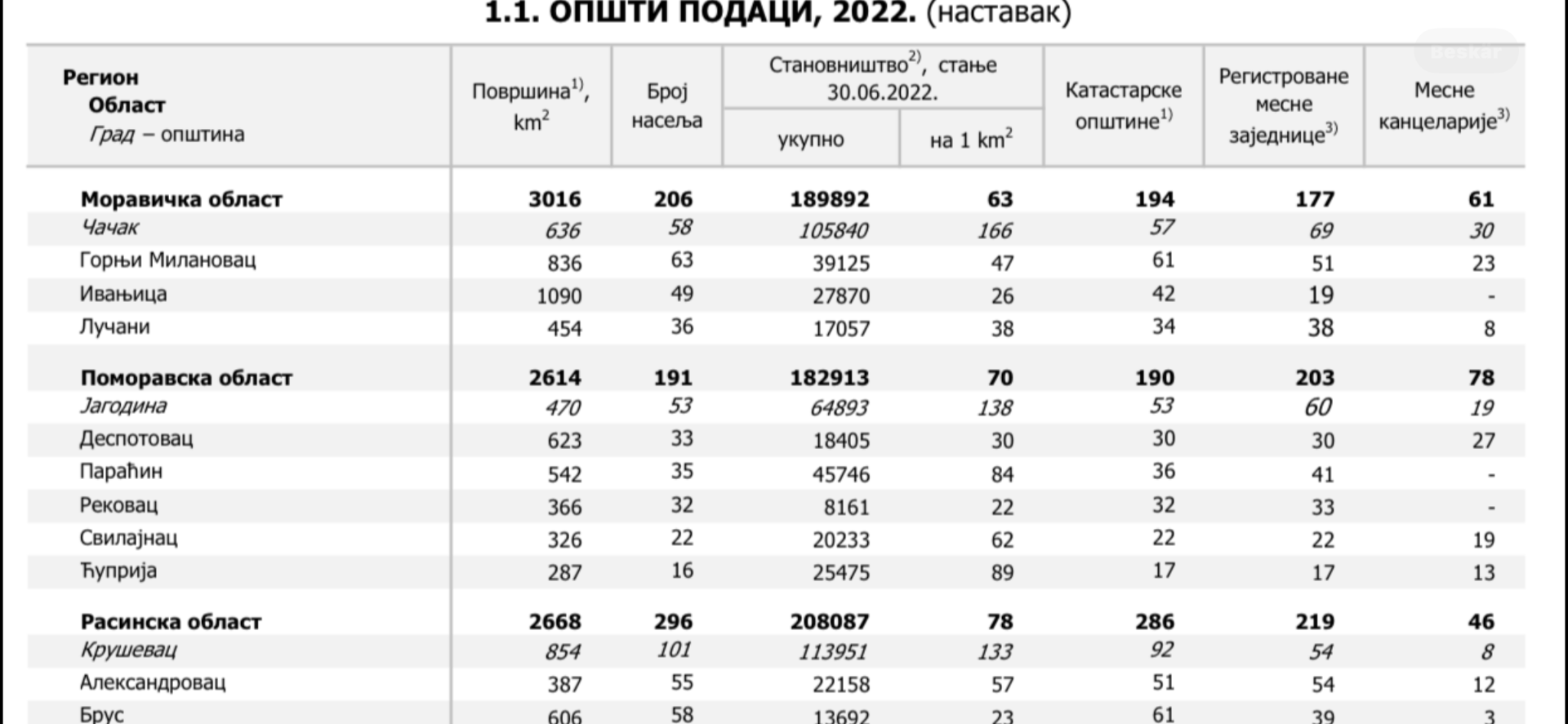Stanovništvo opština Rekovac